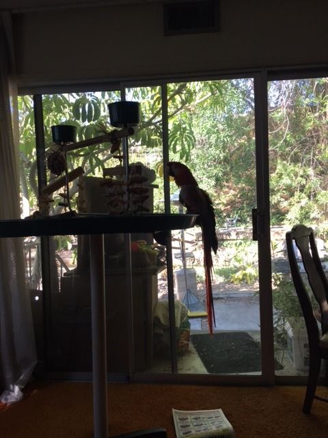 We weren't actually looking for a new bird right now. We have been thinking about getting a macaw at some point, but not until next year at the earliest. We've had a lot going on, including one major household change (short story, Mr. Mathnerd, myself, my ex-husband and his wife all talked a lot and decided that with my middle kid's problems, it might be best if he lived with dad and step mom for a while, and that happened, but not without major drama). However, we found out about a couple of birds who were in a bit of a bind. They needed homes ASAP. So thinking it would be a no-go, we went up to look anyway. There was an elderly blue and gold macaw and a young adult scarlet macaw. The B&G was healthy, looked great and had no behavioral issues. The scarlet is missing a wing and has a severe plucking problem. But it was love at first sight. We brought home Scarlett the scarlet macaw. We have a lot of work to do in order to rehabilitate her, but she will have a loving home here for the rest of her life. (Also, I want to change her name to Letty, as she reminds me of the Fast and Furious movie franchise character).