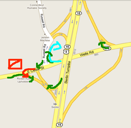 blue shows if you really wanna go that way if youre heading west, then you take a mini ramp