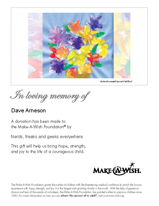 Dave Arneson had been fighting cancer and it got worse last weekend and he passed away last night.