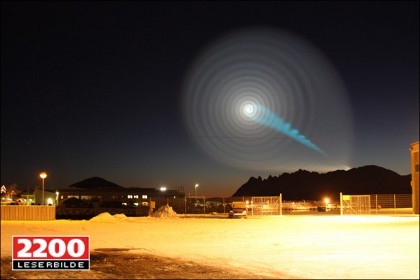 This strange spiral light phenomenon was seen early Wednesday morning in northern Norway, causing wild theories to go flying round the internet. (Space aliens? Large Hadron collider? Wormhole? The Tardis?) Seriously, imagine driving in to work at o dark-thirty in the morning and this is what you see. I'd wonder about my own grip on reality, I think.