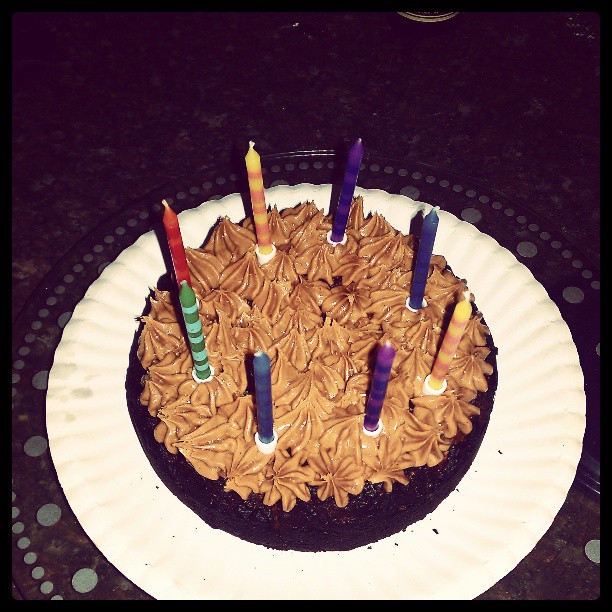 He's 8 I baked him a cake - totally puppy friendly - carrot, peanut butter, honey, oil, some flour etc. Peanut butter piped as frosting