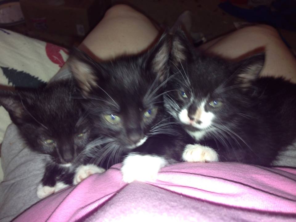 well thats something you don't see everyday. such cute kittens. good luck with them because having owned kittens myself, they can be weird, crazy, and hyper.