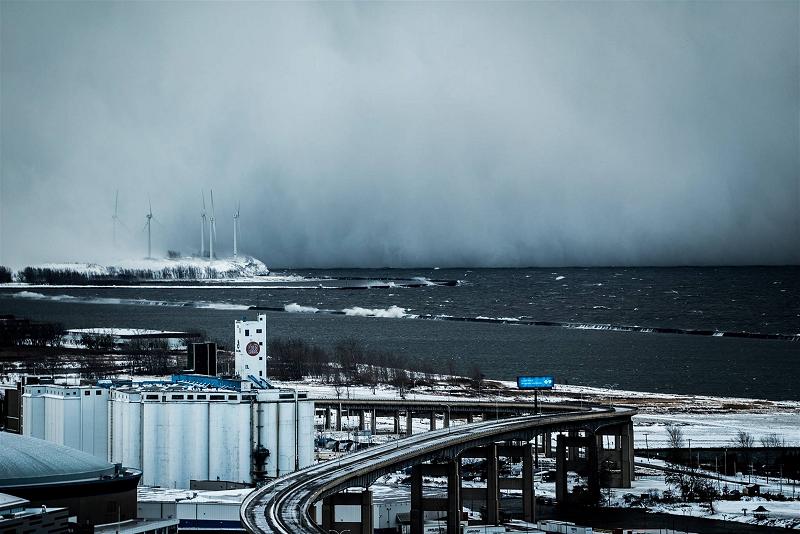These literally show the storm coming in across the lake. The weird thing is that only the south side of the city got hammered. The rest of the town only got about 6 to 8 inches or so, while the south side and the suburbs nearest got about 6 to 7 ft. of snow.