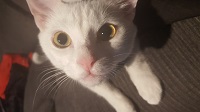 Ghost kitteh! Seriously. This is Snow, my white kitty that died in 2008. I only had her about 6 months. She spent a long time in the shelter. Nobody wanted her, because she wasn't "perfect." Never mind that she was very sweet, cuddly, and playful. No, she was there because she was deaf. If she was asleep, and you startled her by trying to pet her...she'd spaz out