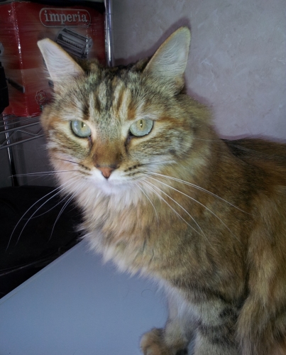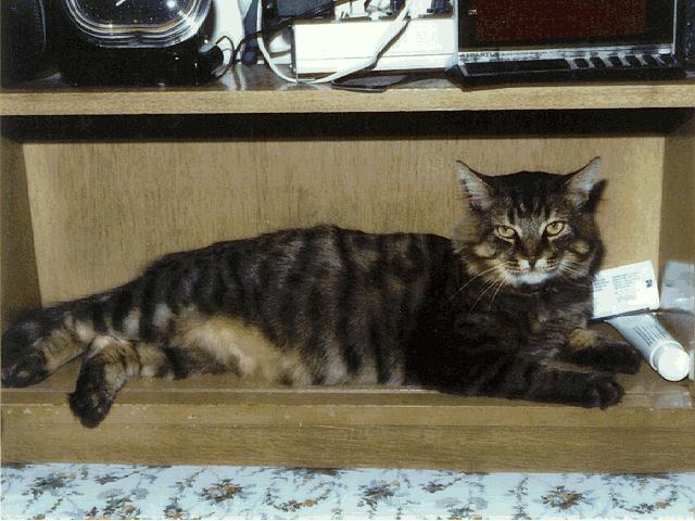 When I first moved out on my own, I got a beautiful little Tortie kitten that I named Minerva, and she was an odd cat. She wouldn't purr at all unless she was sucking on a pillow next to me, and she was vicious to everyone else but me. At the time for my work, I had to travel some, and had my dad come take care of her, and he started calling her Mephistopholes. She crossed the rainbow bridge in 2010, which devastated me, as she had been with me for years at that time, as my only companion.