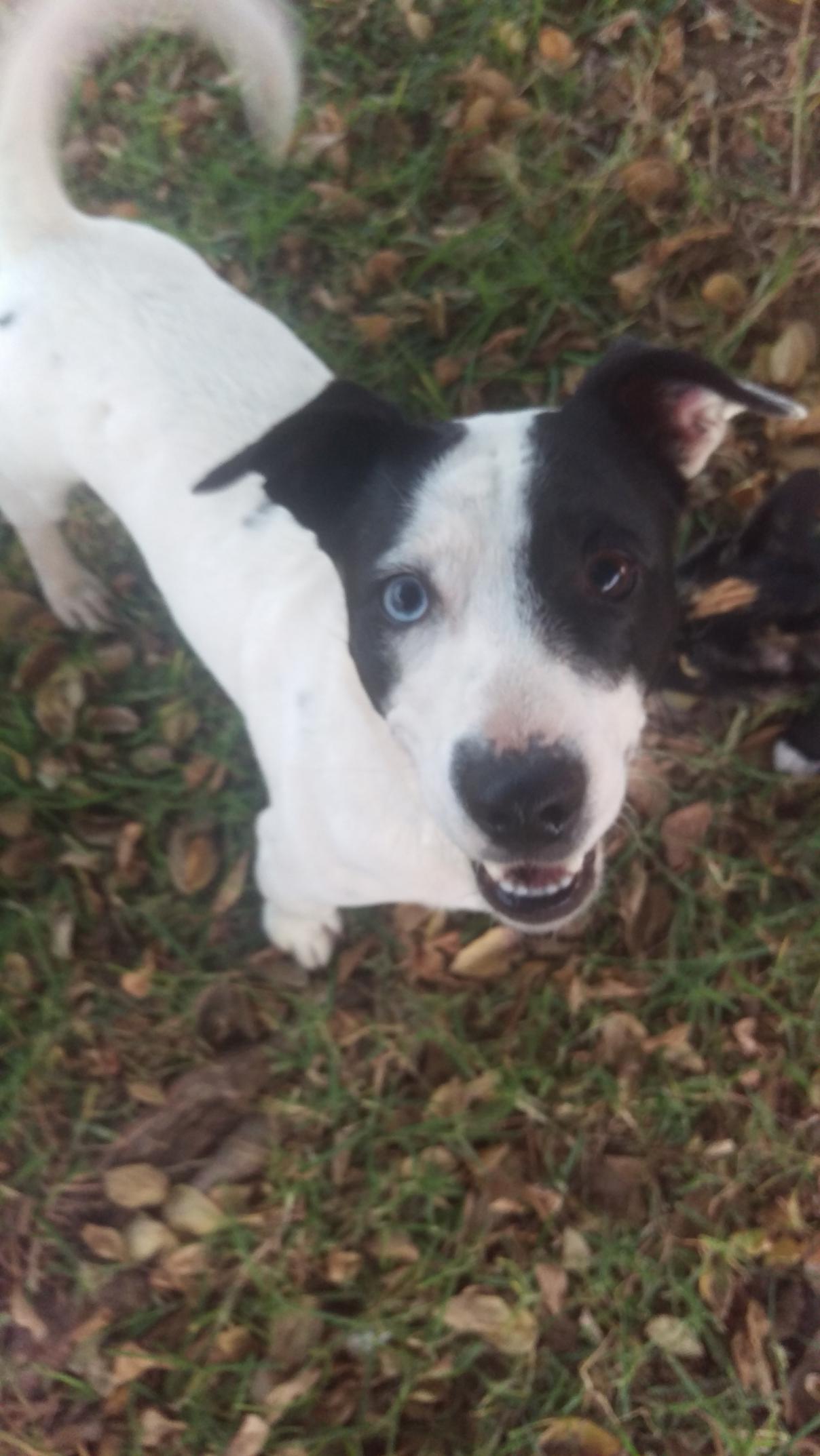 Parrow - her son. 2 years old and does a great Godzilla impression. Has one blue eye.