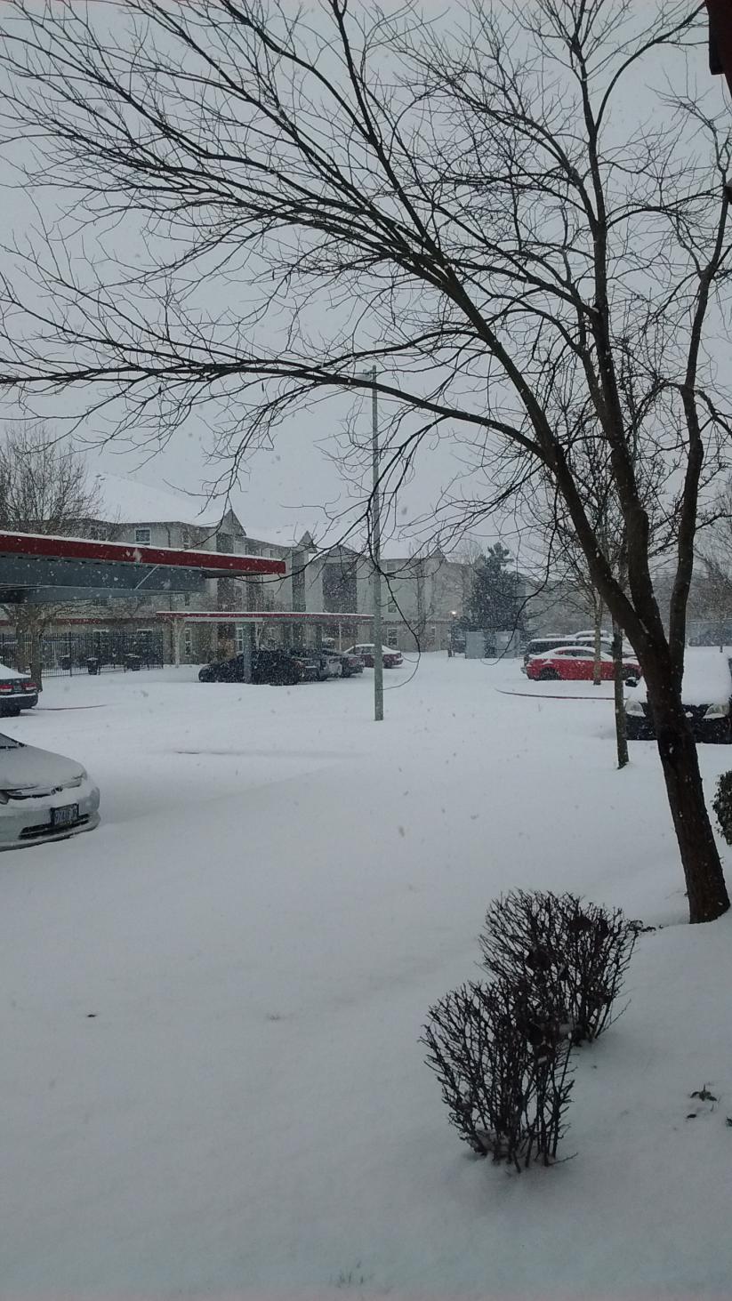 We got a few inches of snow here. Enough to close school for a few days. Driving was fun. The sun was out for a bit, melted the snow...except in the shady parts of the street, which were slick with ice.
