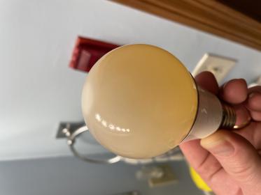 It’s an LED bulb that looks like an incandescent bulb. Somehow, it became completely full of water. It looks like a snow globe, with just a tiny air bubble at the top.