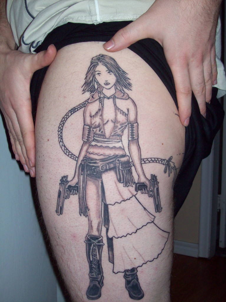 So, I have a large back tattoo in the process of being filled in. I have pictures of the outline, but none of how much work has been done on filling it in yet.