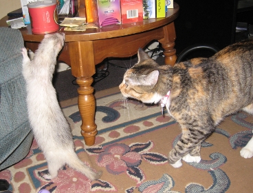 Their favorite thing to do used to be sitting on the back of the armchair in the living room and chewing on the hair of whoever was sitting there. Ow.