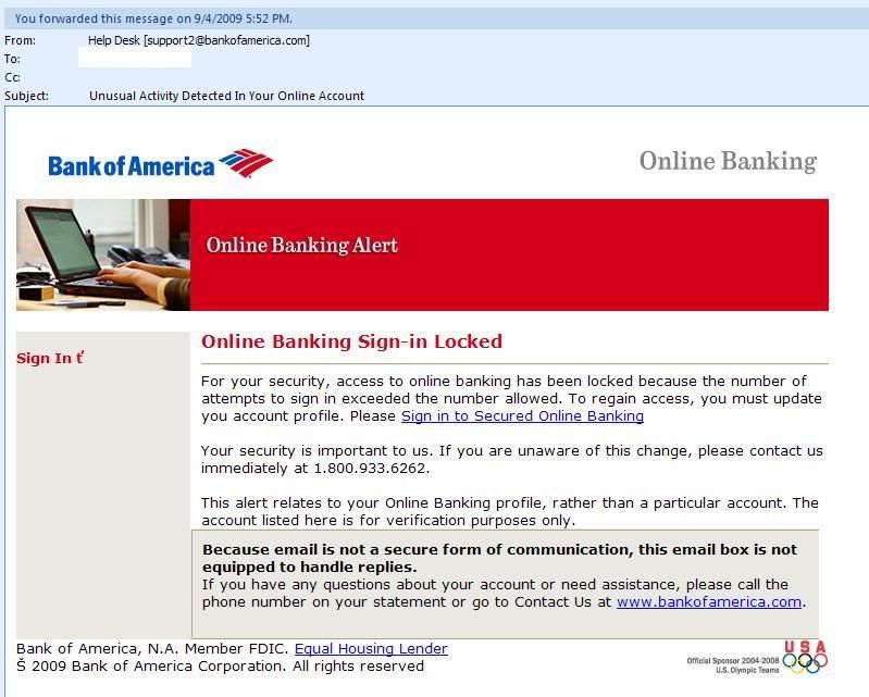 If you receive these emails, forward them to abuse@bankofamerica.com