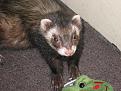 So with hope in hand we started a medicine regimen... much to his displeasure. And progress was made rapidly. His appetite came back with a vengeance. He gained almost a full pound with in 2 months, filling out to actually look like a ferret. We were so happy. Mostly me. He started playing, where as before he would wonder around and find some place to sleep, now he was jumping and dancing and having a good ol' Ferret time. And he seemed to be taking very well to his medicine.