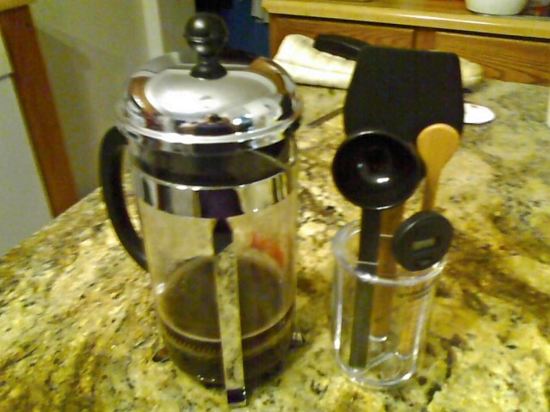 He got me a french press!!! With accompanying coffee bean grinder. We just went out and got some beans and made the best cup of coffee i have ever tasted in my life. IN MY LIFE!!!