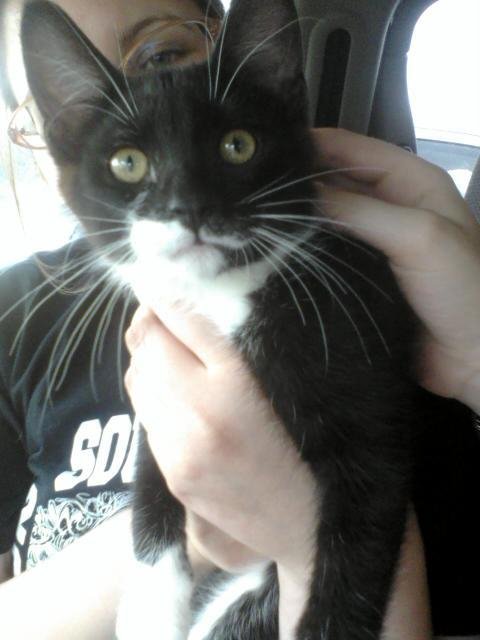 We held him and knew he had to come home with us. My other two kitties are not very pleased, but my fuzzy cat (see avatar) CJ, may take a shine to him yet. Sparta is very playful and loves to attack our feet. He chose Munchkin as his human, which is good because of her gerbil's passing weeks ago.