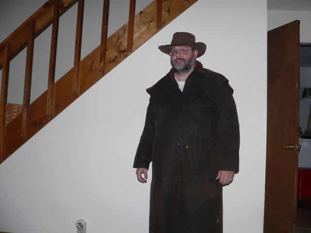 I have freaked out a few people when I walked into work wearing that coat & hat. I have room for the six shooters and a sawed off.