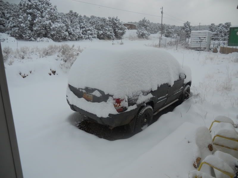 Up here in the high desert all those storms have bypassed us to the north due to it bein' a La NiƱa year but we finally got a foot or more overnight.