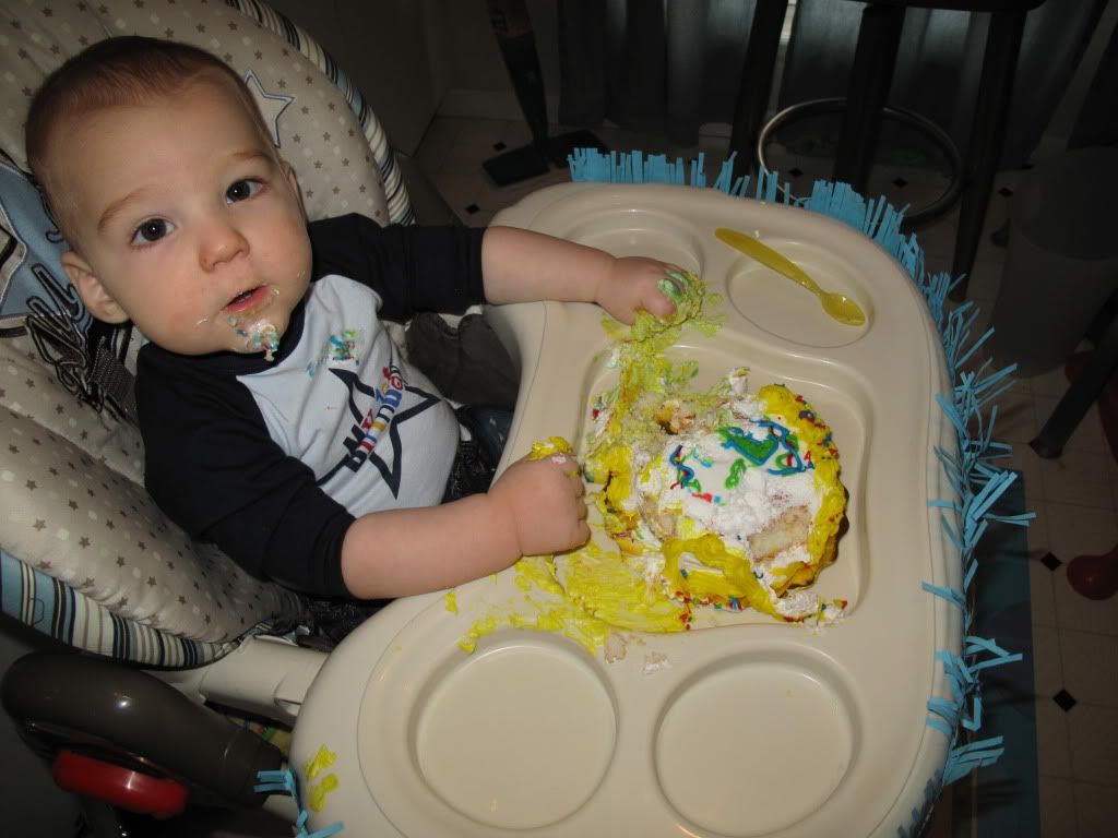 He really didn't make a mess of his cake. I expected to need to toss him in the tub right after, but he barely made a mess.