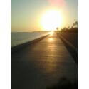 But I did get a couple of pictures for you guys. They're not great, because as much as I love my phone, the camera on it blows chunks, and they make things look a touch darker than they were, but it should give you an idea of what things looked like on my final lap of The Loop. For the record, I was going clockwise on The Loop, which means that along the seawall, the sunset was in my face, the shadows were behind me, and the water was to my left. If you look at the second picture, you'll notice the shadow of me on my bike. The third picture is just one of my really awesome bike...because I can.