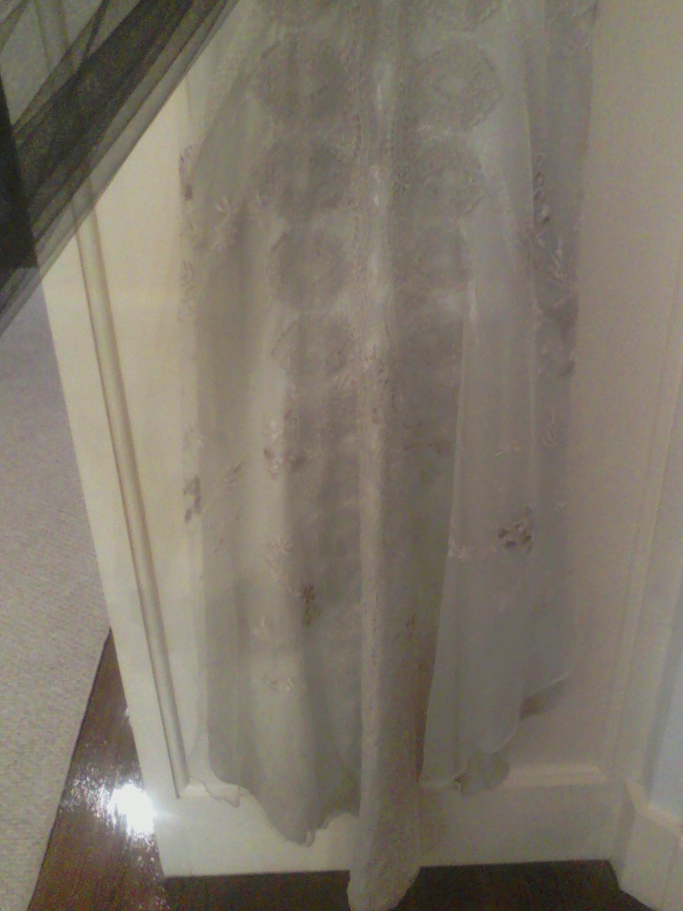 The first is another view of the dress, though you can see the detail a touch more, since I'm sorta facing the mirror. The second one is an image of the detail on the back of the dress, under the extra bit of train.