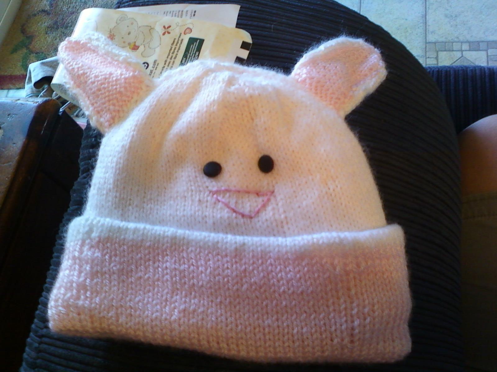 The family is super excited, she will be the first grandbaby for our folks. However, my co-workers and friends have pointed out that I'm spoiling the child already. I have decorated 5 onesies for her, knitted a bib, started on a knitted hat that looks like a bunny when finished and I'm 1/2 way done with a blanket. Next on my needles will be some booties, and I just received the yarn to make two stufed toys for her. And I purchased a basket to put all the baby things inside of when I give them to my sister-in-law at the babyshower. It's pink with a teddy bear on the front that can be re-used as a toy box as she grows .