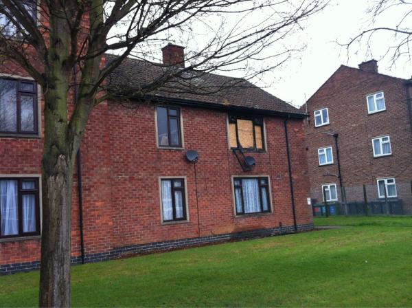 It was gutted. The front room window was blown out from the heat of the fire, one window was on the ground and the other hanging off (it still is) and was blackened from the fire damage. The bedroom was damaged from what we could see but we were more concerned to see if ours was damaged in anyway. A fireman accompanied me up the stairs after I had bolted out of the car barely as mother had stopped. Thankfully all we had was a rather smokey smelling flat to contend with. It made the Local Paper .