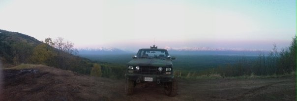 The top on is driving down the Seward Highway, just outside Anchorage. I think we were right around Indian but before Girdwood. The bottom one is at the top of one of the trails in the Valley. That's our Blazer I've mentioned before.