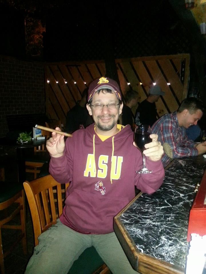 Last night was the annual football game between my alma mater, the Arizona State University Sun Devils, and our hated rivals to the south, the University of Arizona Wildcats. I watched the late game 10:00 pm ET kickoff) with my friend Little Red (who dressed up in Sun Devil gear I provided her, and looked adorable doing so) and my friend Big Charles, who not only is a devoted Wildcat, he actually used to play for their football team. Watching rivalry games with the other team's fans is FUN!