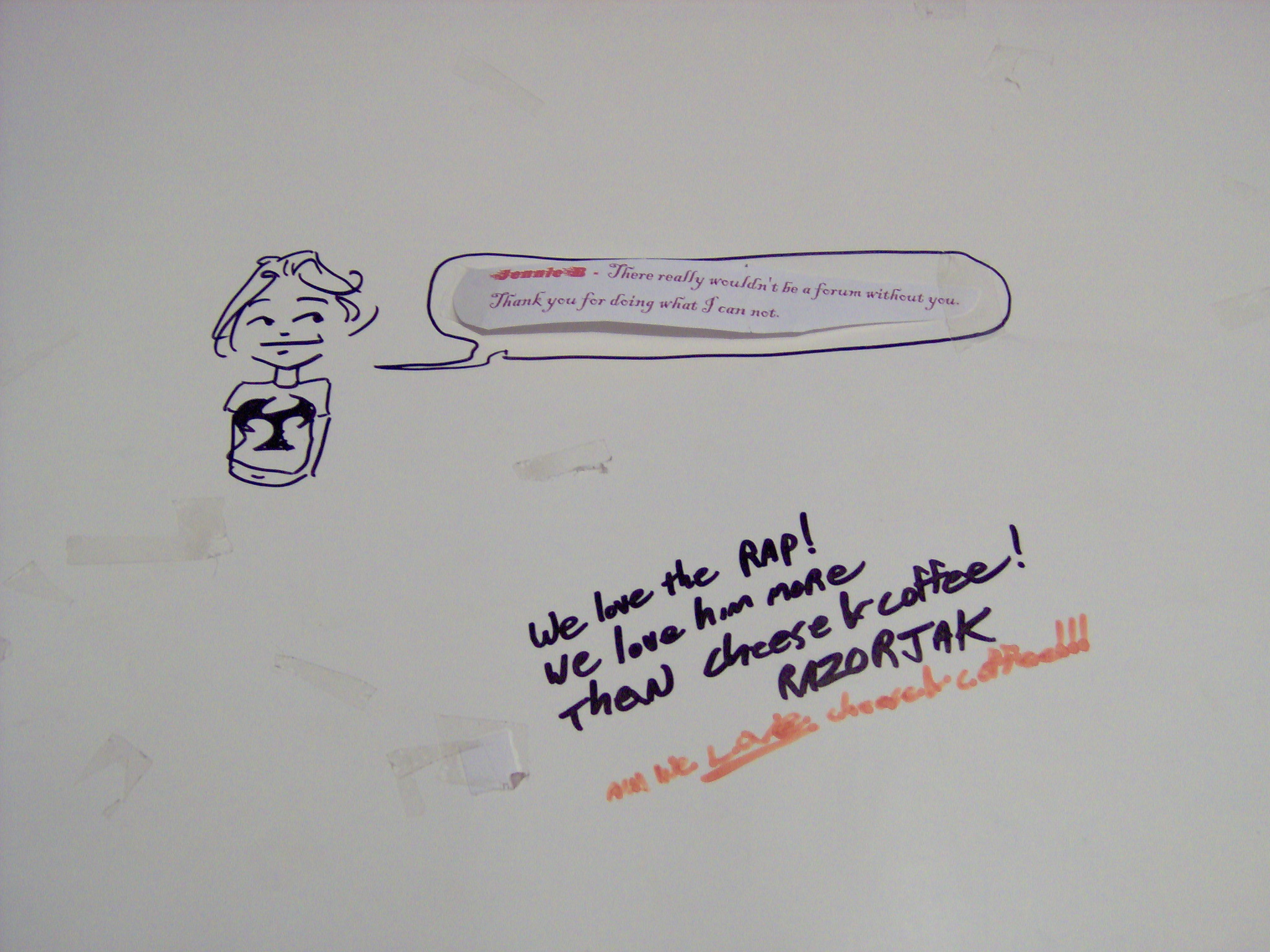 Thanks, folks, and hug Al for arranging all this. By the way, Al, I decoded the secret message you'd left. You'll have to buy me dinner first.