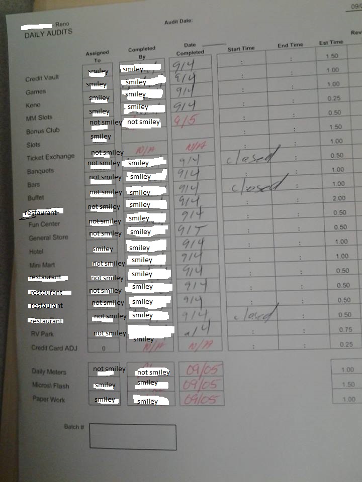 Yeah, if you add up all the estimated times for what I did that day, it was 17.5 hours worth of work, in under 8. Everyone called in except for me and the boss... who technically was only supposed to do one thing (the daily meters)... okay, so only one audit, the rest of his day was supposed to be auditing our audits... even then he only took on one additional audit, the rest was all me. Roar.