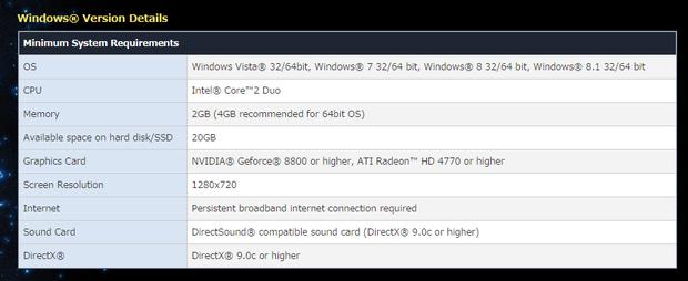 Final Fantasy XIV online, it requires (screenshot for laziness):