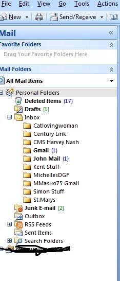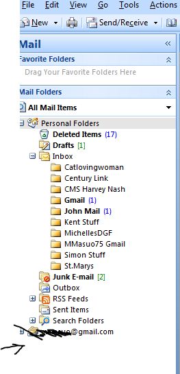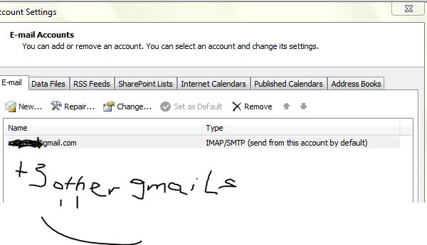 Ok. Office 2007. Fire up Outlook. I started thinking, hm, let's add the accounts up on there. When I did that, the account(s) all piled up one on top of each other. Ok, that's standard.